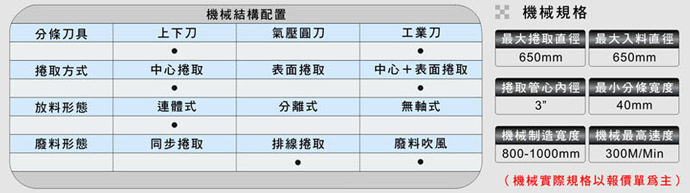 成品卷取方式:可配備板條式氣壓軸及滑差式卷取軸,適用更廣范圍,換軸方式經(jīng)特殊設(shè)計(jì),可以隨時(shí)更換。