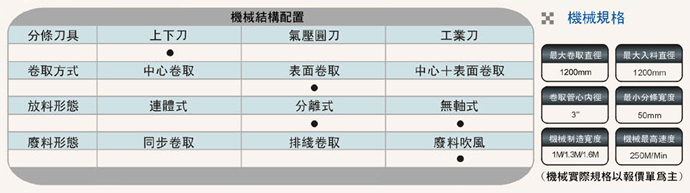 電機控制部分:長度控制部分使用光電式感應(yīng)器搭配兩段式計長器,長度準確。張力控制器為自動卷徑控制,可隨直徑變化自動增加張力。