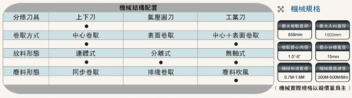 各種紙張及水松紙等材料之分切。
