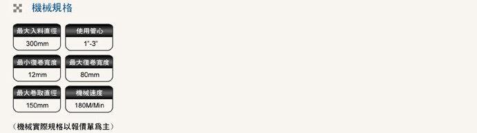 用于各種膠帶、紙張、薄膜等大卷復(fù)卷小卷以及不良品重繞。